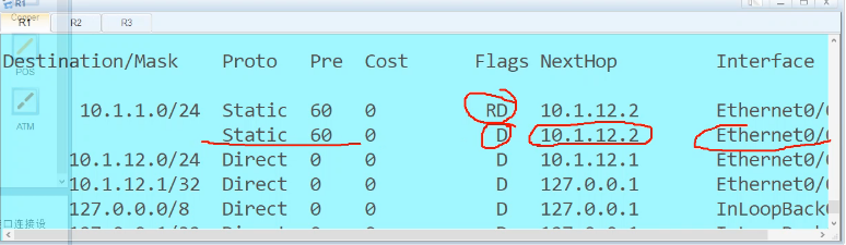 静态配置及问题:默认ping的是物理接口,所以静态需要目的地址是物理地址,路由表需要有条目。