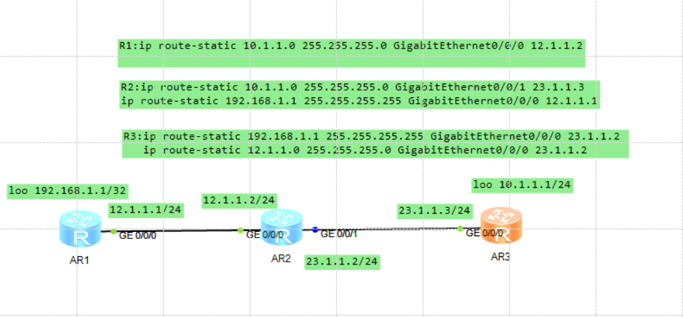 配置格式:ip route-static 目的地址 掩码 下一跳