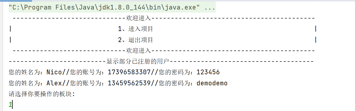 println("-------------------------显示部分已注册的用户-------------------------------------")