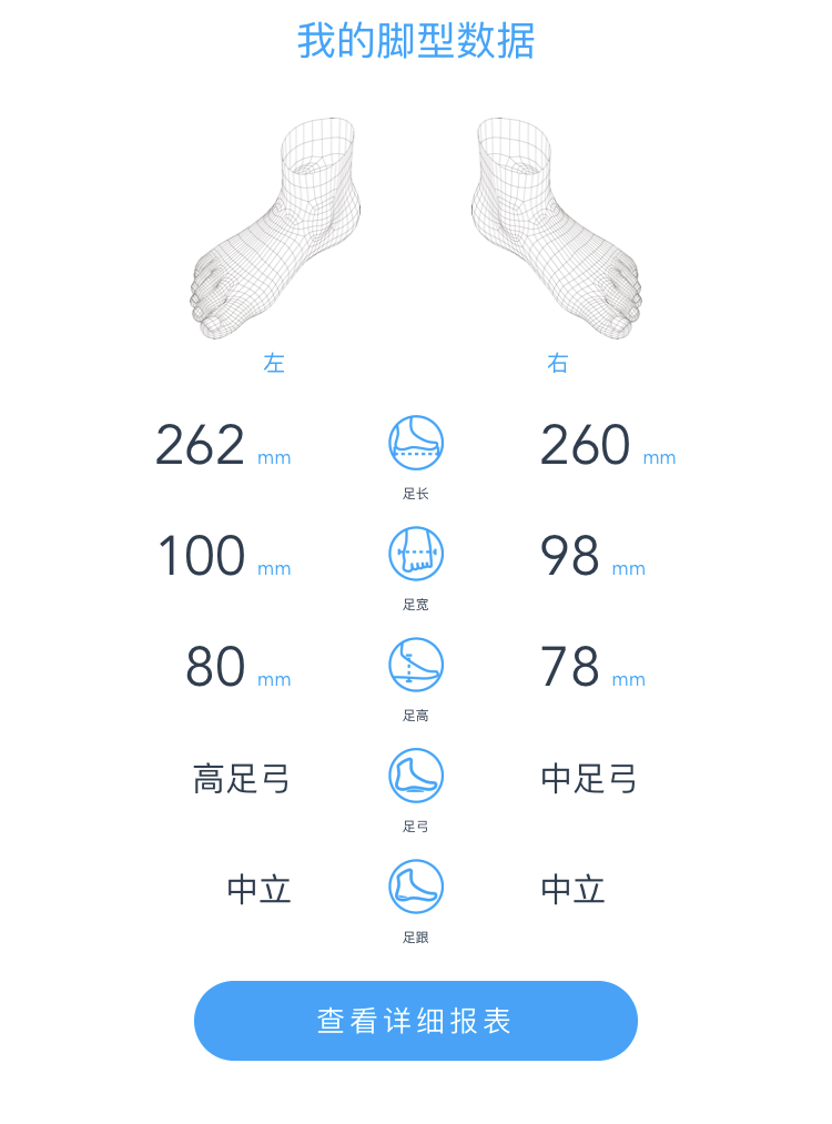 基于鞋类个性化定制业务,双驰和中科院共同研发了的“识足鸟脚型足压扫描仪”。用户只需站在脚型量测设备上约15秒,设备即可获取用户的足长、足宽、足高以及足底压力值、有无内外翻以及骨盆状态等数据信息,系统会自动生成用户的足部三维模型,再经过云计算和大数据分析为用户挑选出最为匹配的鞋款,