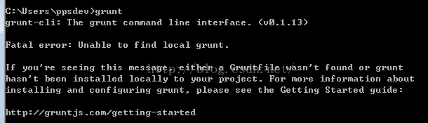 nodejs默认安装 cmd -> npm install -g grunt-cli -> 回车