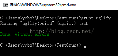 下面在命令行中执行grunt uglify命令,如下图所示: