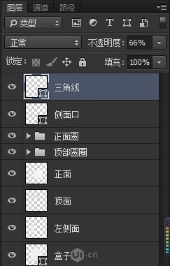 4.绘制出 三角线 方便区分出三个面,接着给三个面上个颜色,这里面大家随时结合着钢笔工具以及选区工具。再运用形状工具将顶面的插头以及正面的圆形状绘制出来