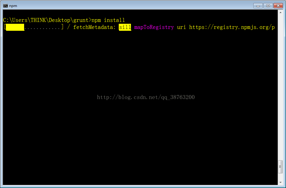 然后在命令行下切换到项目目录下执行npm install, 就会根据package.json文件下载插件。静静等待插件安装完成。