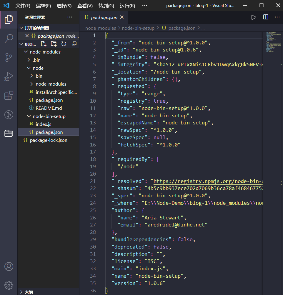 1、在项目文件夹目录下使用npm install node,空文件夹就变成了一个具备Node.js开发环境的文件夹了,安装完成后如下: