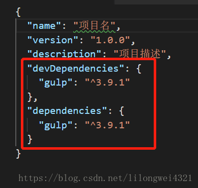安装方式:npm install gulp -save-dev 回车(注意package.json文件内容变化)