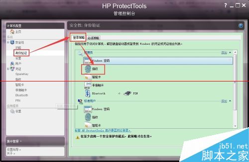 2、之后在软件主界面依次选择“安全性”-“身份验证”-“登陆策略”,然后点击“指纹”图标
