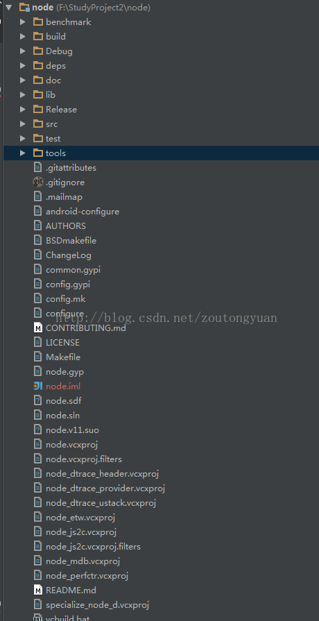 我们在IDE 中 打开刚才的node目录,方便我们看源码。我这里是Idea查看。