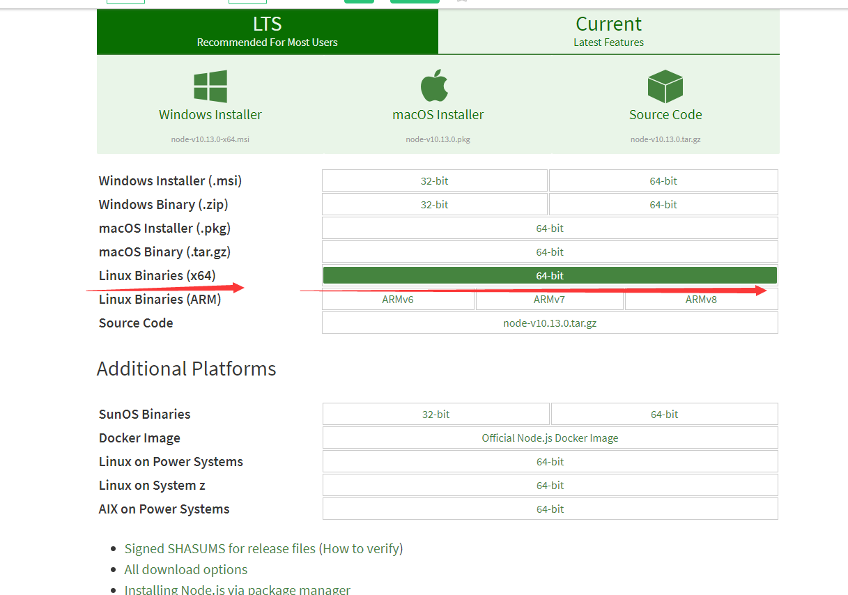 1.到官网下载与自己系统匹配的nodejs版本
