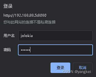 重启tomcat,访问http://192.168.88.5:8080/jolokia,验证上面设置的用户名和密码。