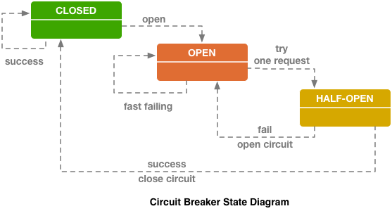 断路器可以防止一个应用程序多次试图执行一个操作,即很可能失败,允许它继续而不等待故障恢复或者浪费 CPU 周期,而它确定该故障是持久的。断路器模式也使应用程序能够检测故障是否已经解决。如果问题似乎已经得到纠正,应用程序可以尝试调用操作。