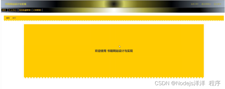 会员登录进入书籍网站设计与实现后台可以查看首页、个人中心、我的收藏管理、订单管理等内容进行详细操作,如图5-13所示。