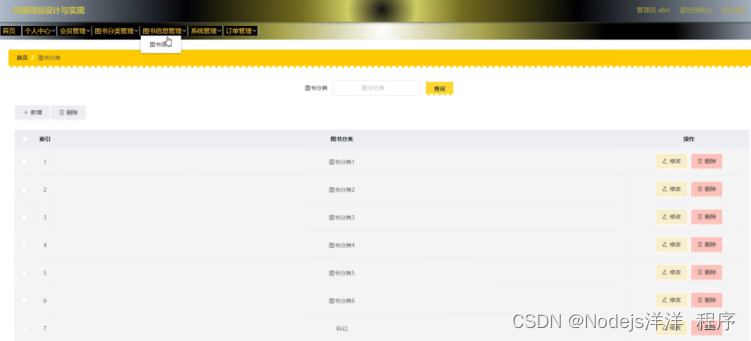 图书分类管理,在图书分类管理页面中可以查看索引、图书分类等内容,并进行修改或删除等操作,如图5-9所示。