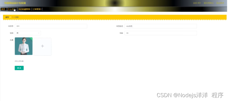 个人中心,在个人信息页面通过填写会员号、会员姓名、性别、年龄、头像等内容进行个人信息修改操作,如图5-14所示。