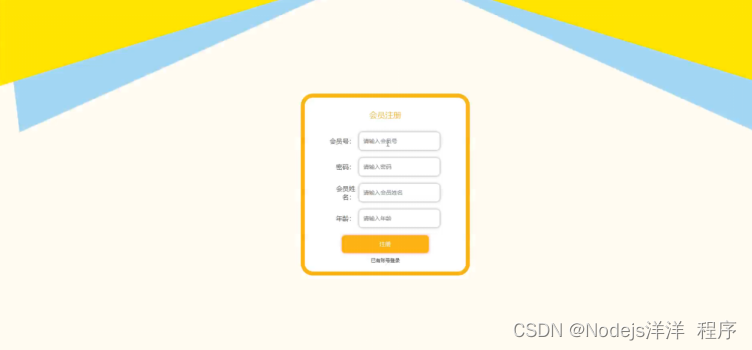 会员注册,在会员注册页面中输入会员号、密码、会员姓名、年龄等内容进行会员注册操作,如图5-3所示。