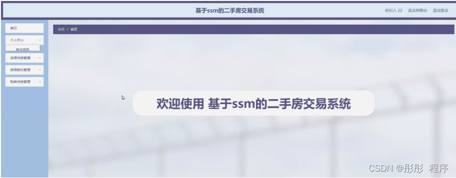 经纪人通过登录进入系统可查看个人中心、房源信息管理、房源委托管理、购房信息管理等内容,如图5-18所示。