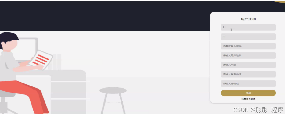 用户注册,用户通过输入用户账号、密码、用户姓名、年龄、联系电话、身份证进行注册,如图5-2所示。
