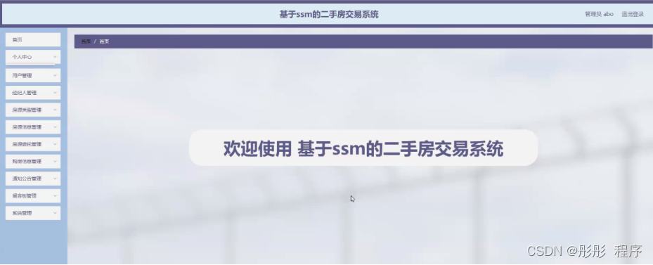 后台管理,用户可在后台管理页面查看个人中心、房源委托管理、购房信息管理等内容,如图5-6所示。