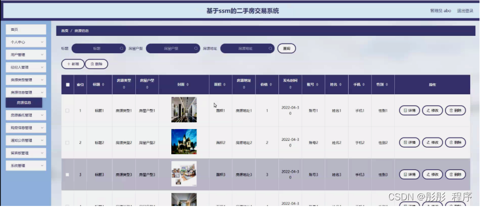 图5-19房源信息管理界面图