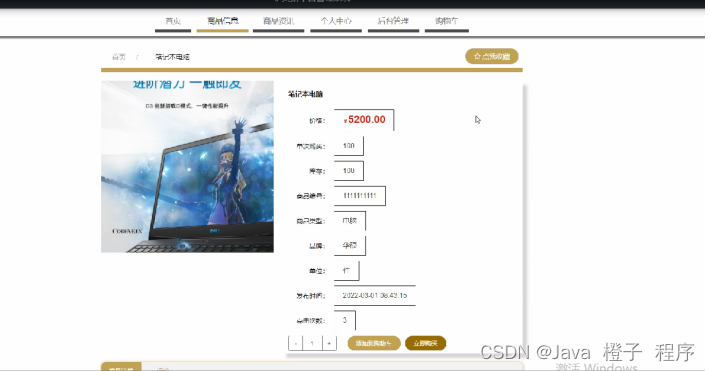 商品信息,在商品信息页面查看商品名称 价格,单次购买,库存,商品编号,商品类型,品牌,单位,发布时间,点击次数等内容,可以根据需要进行添加到购物车,立即购买或我的收藏等相关操作,如图5-3所示。