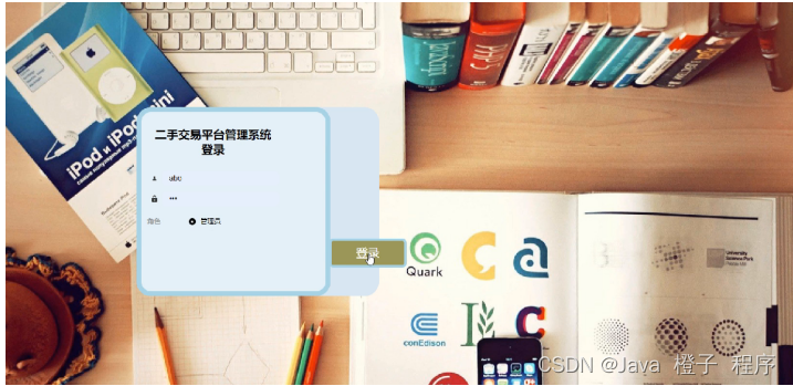 登录,管理员进入系统前在登录页面根据要求填写用户名和密码,选择角色等信息,点击登录进行登录操作,如图5-5所示。