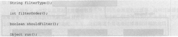 3:shouldFilter:返回一个boolean类型来判断该过滤器是否要执行,所以通过此函数可实现过滤器的开关。在上例中,我们直接返回true,所以该过滤器总是生效