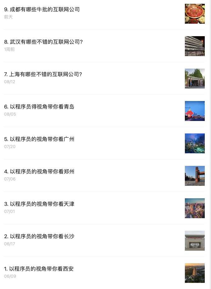 程序员视角观城市系列已经更新有 9 期了,我们一起看了西安、长沙、天津、广州、青岛、武汉、成都、上海。除了上海和广州之外,其余的都是二线城市。