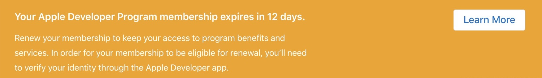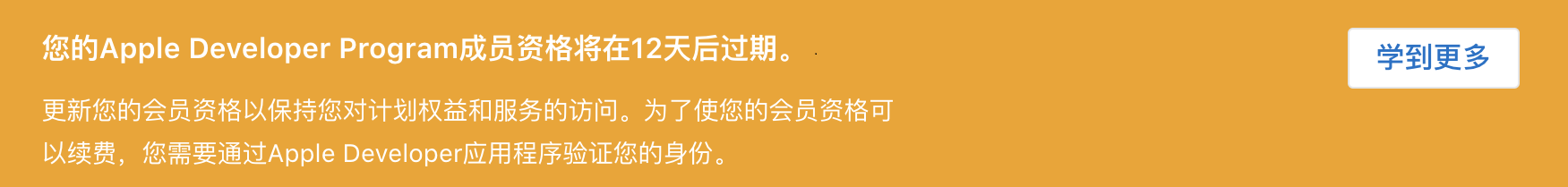 You Apple Developer Program membership expires in 12 days
