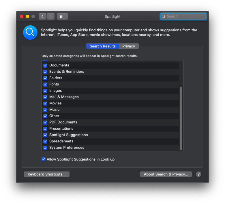 完成如上所有步骤后,就可以尝试使用Spotlight搜索之前无法搜索出来的内容了。