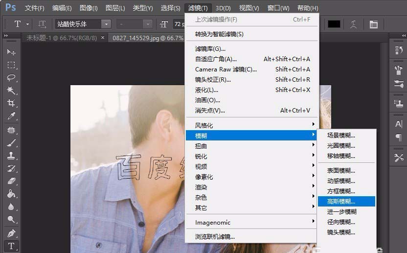 9、选择描边图层后使用滤镜中的高斯模糊。