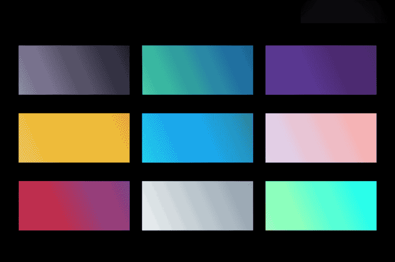 相信大家应该也发现近年来渐层在接口设计/简报上面的运用其实都相当的普遍,像是我相当喜爱的一位泰国设计师Tintins跟美国的设计工作室Awesomed在作品中都使用了相当多的渐层元素。除此之外,我们也可以发现渐层常常可以莫名其妙地带出一些好像很厉害的感觉,有一种把光影融入设计里面的Feel。对于初学者而言,利用渐层做出干净易用的接口是相对难的,日后会多拿一些工作上的使用与经验和大家分享。底下几组是我利用上面提到的各种技巧拉出来的对比色渐层界面: