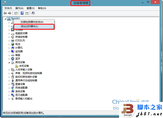 设备管理器—机器名—右健—添加过时硬件