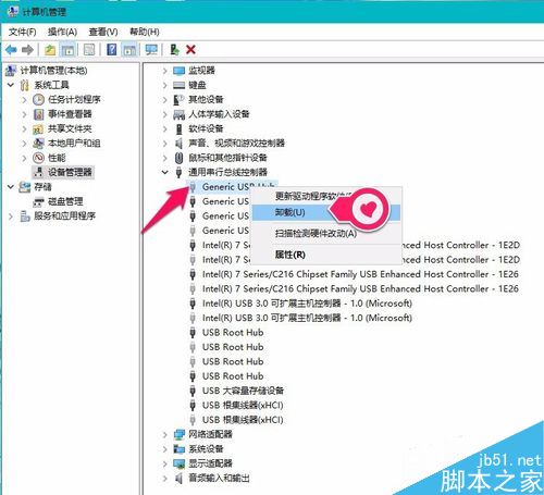7、把所有隐藏的设备全部卸载——右键卸载。如图