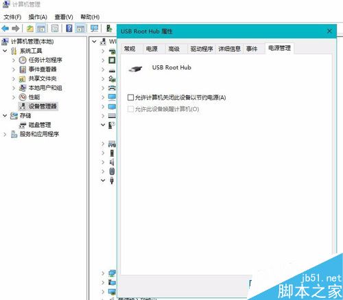 10、如果还不行试试“通用串行总线控制器”下的所有“USB Root Hub”项目,的属性中“电源管理”选项卡——去掉“允许计算机关闭此设备以节约电源”如图