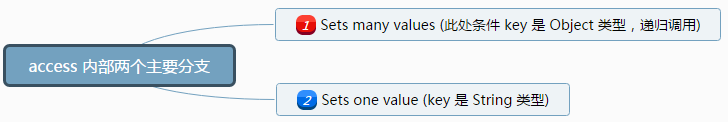 所有这些函数内部都依赖另一个函数 access, 毫不夸张的说 access 是所有这些函数的核心,是实现 setter/getter 的核心。下面是这个函数的源码,它是一个私有的函数,外部是调用不到它的。