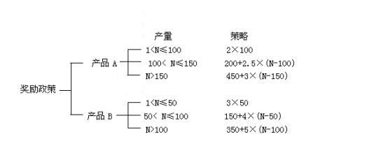 【例4.5】某工厂对工人的超产奖励政策为:该厂生产两种产品A和B。凡工人每月的实际生产量超过计划指标者均有奖励。奖励政策为: