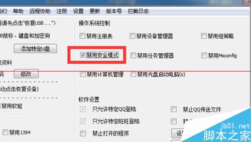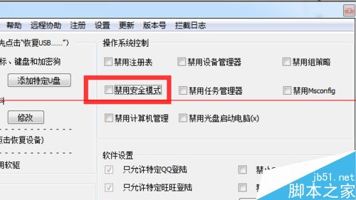 9、安装并运行此工具,在弹出的程序主界面中勾选“禁用安全模式”项,以实现禁用电脑开机显示“安全模式”启动菜单界面。