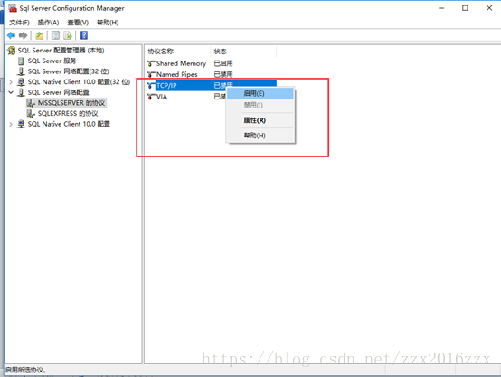 1、启用TCP/IP协议。
