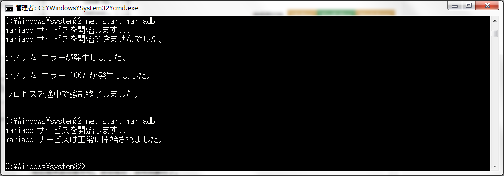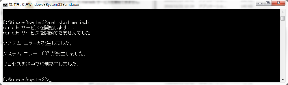 还有一点非常重要,就是上面提到的,MariaDB安装目录下的my.ini配置文件必须要删除,不然启动服务时就会出现下面的错误,进程被强制终结掉了。