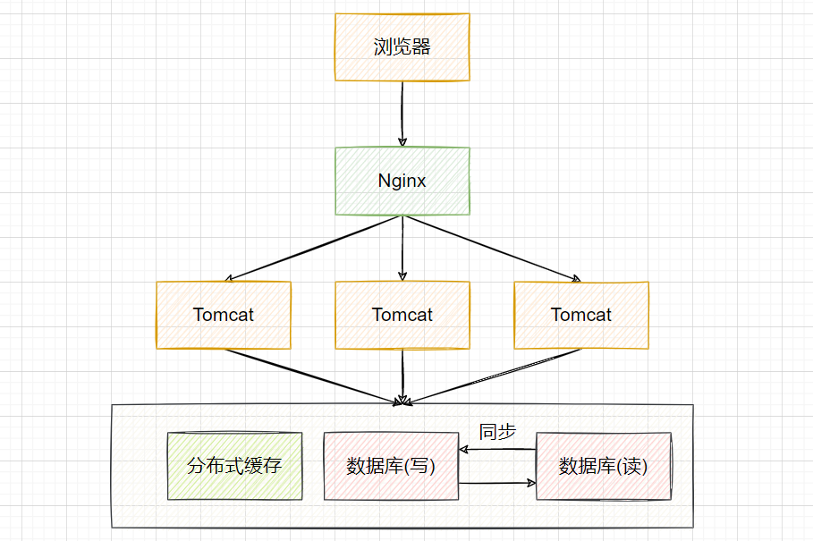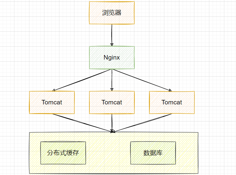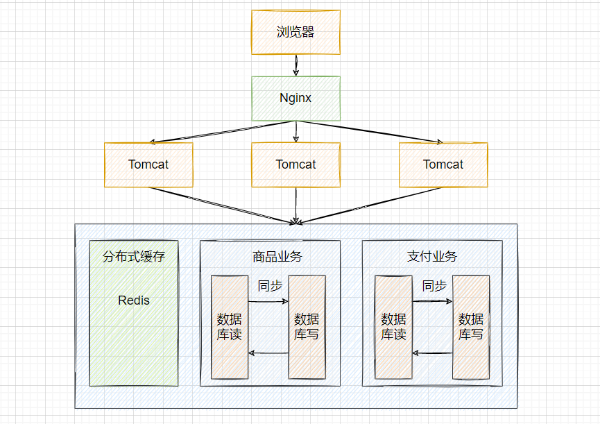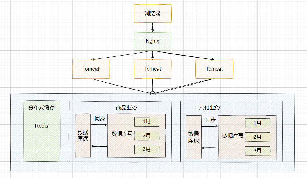 随着用户数的增长,并发压力主要落在单机的Tomcat上,响应逐渐变慢。