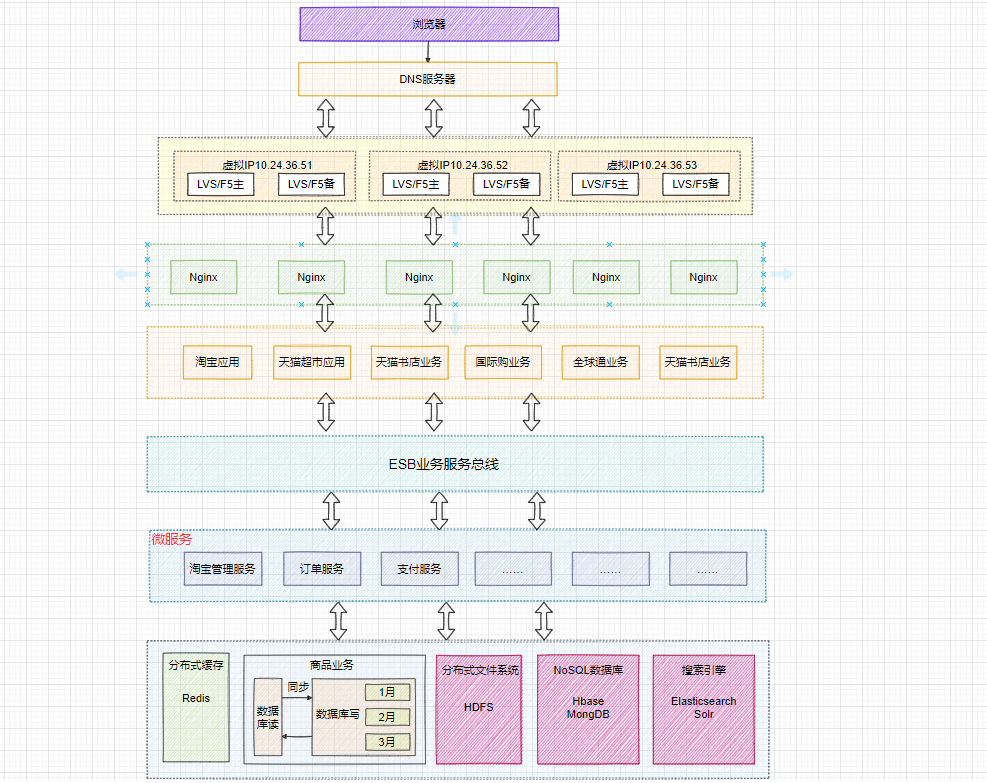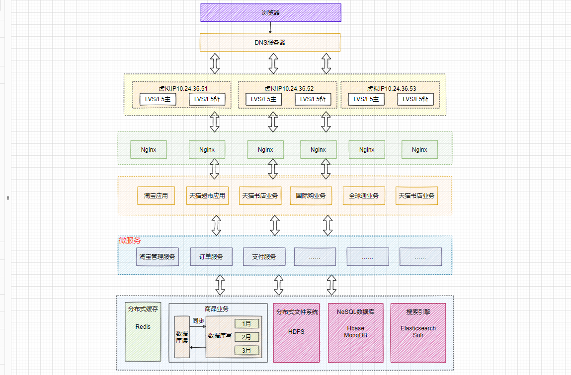 以上就是负责电源最近收集整理的关于系统架构设计——淘宝架构设计演进摘要一、基本概念二、单机架构设计二、数据库与服务分离设计三、缓存系统架构设计四、反向代理与负载均衡设计五、数据库读写分离设计六、数据库按业务分库设计七、数据库分库分表设计八、LVS或F5与Nginx负载均衡设计九、DNS轮询与负载均衡设计十、NoSQL数据库和搜索引擎等技术十一、SOA系统架构设计十二、微服务系统架构十三、ESB企业服务总线架构设计十四、容器化系统架构设计十五、系统云平台系统架构设计十六、云系统容灾备份系统架构设计十七、架构设计总结博文参考的全部内容,更多相关系统架构设计——淘宝架构设计演进摘要一、基本概念二、单机架构设计二、数据库与服务分离设计三、缓存系统架构设计四、反向代理与负载均衡设计五、数据库读写分离设计六、数据库按业务分库设计七、数据库分库分表设计八、LVS或F5与Nginx负载均衡设计九、DNS轮询与负载均衡设计十、NoSQL数据库和搜索引擎等技术十一、SOA系统架构设计十二、微服务系统架构十三、ESB企业服务总线架构设计十四、容器化系统架构设计十五、系统云平台系统架构设计十六、云系统容灾备份系统架构设计十七、架构设计总结博文参考内容请搜索靠谱客的其他文章。