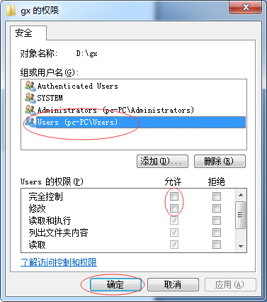 为了保护共享文件的安全,默认情况下我们一般都赋予共享文件只读权限,也就是客户端电脑只能查看而不能修改或删除共享文件,如果你想允许客户端执行上述操作,则可以在“修改”或“完全控制”这里打勾,并点击下面的“确定”即可。