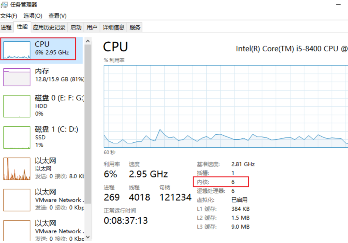 还有一个我们需要知道:逻辑处理器个数 = CPU的线程数,也就是说有多少个逻辑处理器,就可以开多少个线程。对于一个CPU,线程数总是大于或等于核心数的。一个核心最少对应一个线程,但通过超线程技术,一个核心可以对应两个线程,也就是说它可以同时运行两个线程。
