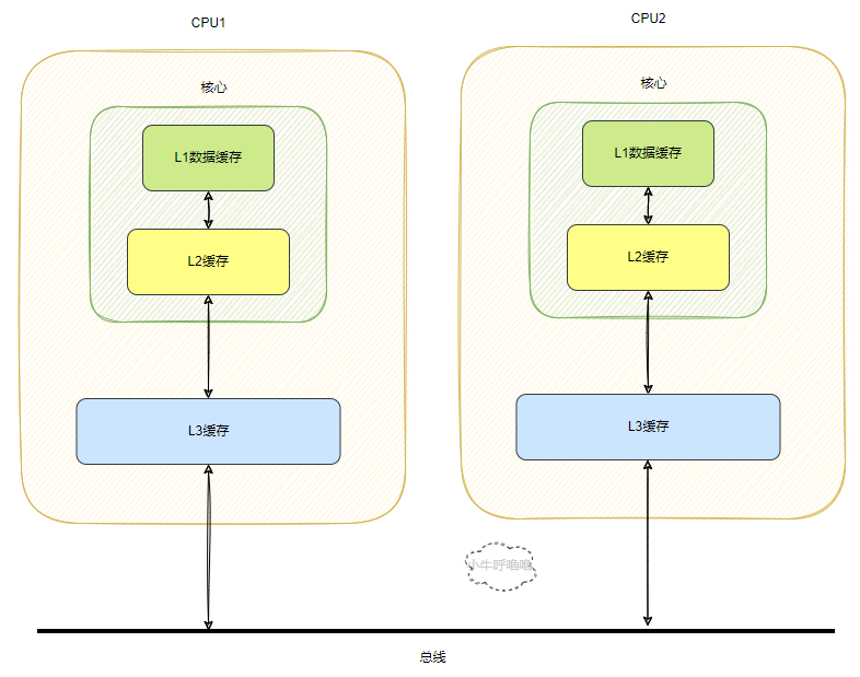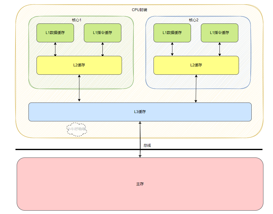 L3 cache和片内总线进行通信,主存和外设通过总线与CPU通信