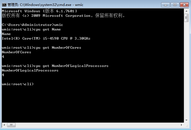 在Windows中,在cmd命令中输入“wmic”,然后在出现的新窗口中分别输入“cpu get Name”,“cpu get NumberOfCores”,“cpu get NumberOfLogicalProcessors”即可查看物理CPU数、CPU核心数、线程数。