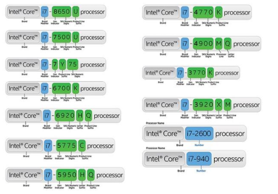 比如Core i7-6700K、Core i7-7700K、 Core i7-8700K,都是700这个型号。