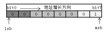 成员bt0就位于一个字节中最低地址bit0处,成员bt7就位于一个字节的最地址bit7处。