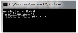 printf("onebyte = %#x/r/n", *((unsignedchar *)&onebyte));