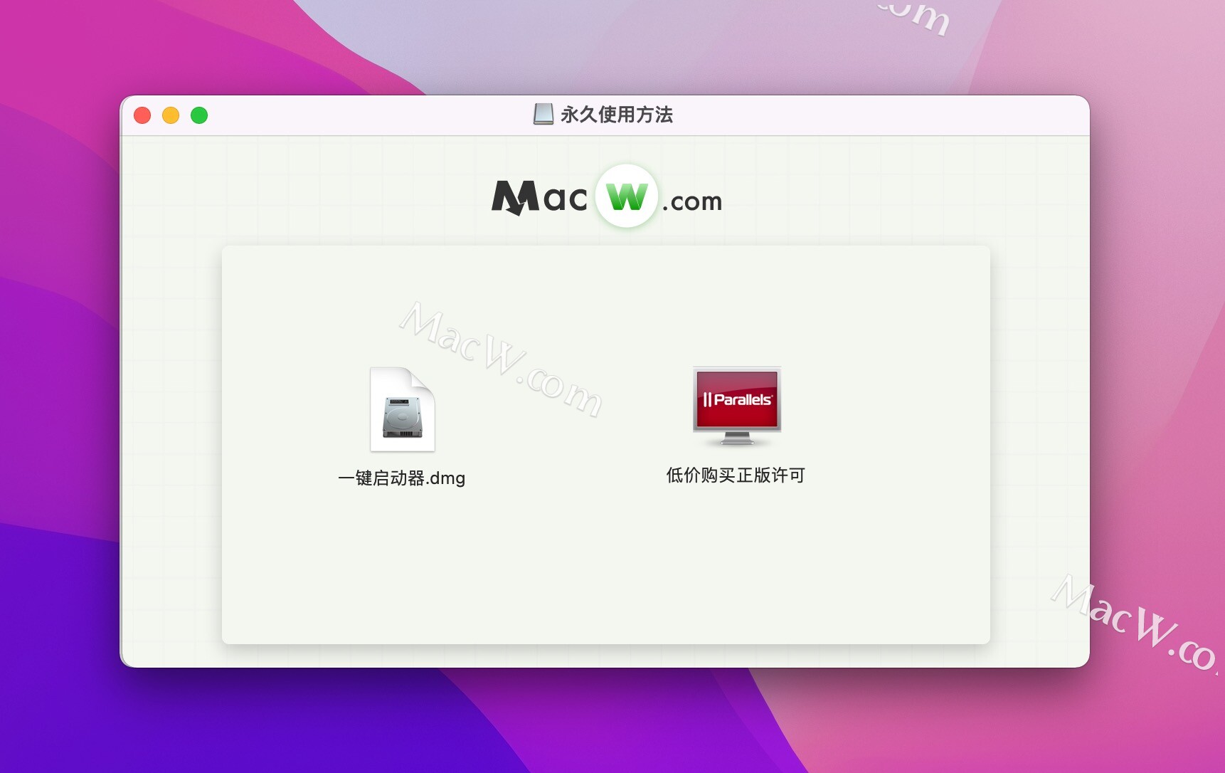 PD17虚拟机怎么利用PD启动器激活?Mac电脑安装双系统必备Parallels Desktop 17虚拟机,pd17支持M1,支持macOS12.0,今天教大家如何利用PD启动器来实现PD17无限试用的目的,本包内为大家提供了免安装的Windows10和11系统,避免了一些新手小白不会找Windows系统和不会安装的烦恼。