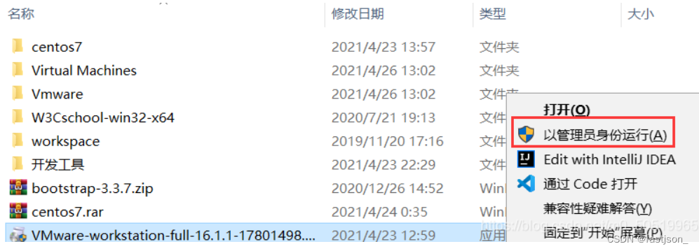 1、找到下载好的VMware-workstation-full-16.2.4-20089737文件,鼠标右击以管理员身份运行